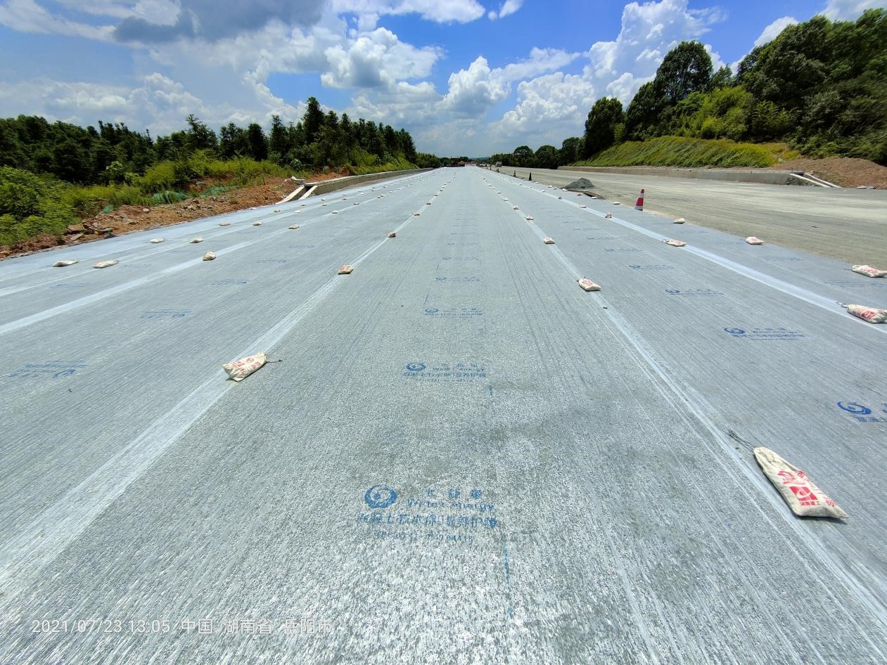 一張薄如蟬翼的“塑料膜”竟可以鎖住自重200倍的水分?走進水口-崇左-愛店高速公路(崇左至愛店口岸段,以下簡稱崇愛高速)K2、K8路面試驗段,3.4公里的水泥穩定碎石都敷上了一層“面膜”。